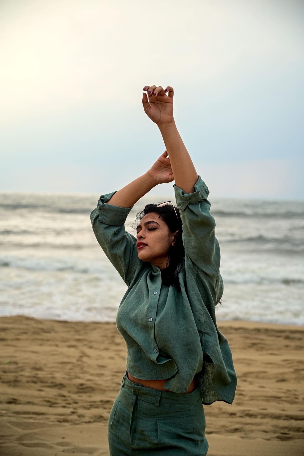 High Slit linen Dress with Detachable Belt
