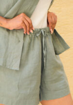 Mid Waist Elasticated Linen Shorts
