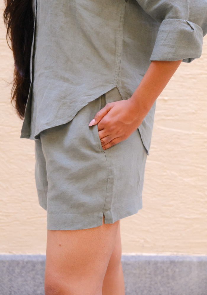 Made for sunshine and slow days, our Mid-Waist Linen Shorts are your go-to for effortless comfort and cool, breathable style. Crafted from 100% linen with a soft hand feel, they feature a relaxed fit with an elasticated waistband, functional side and back pockets, and a flattering mid-rise silhouette. Perfect for travel, lounging, or casual outings, they pair seamlessly with tanks, oversized shirts, or swimwear. Easy to wear, easy to love—these shorts are a summer essential you’ll reach for on repeat.
